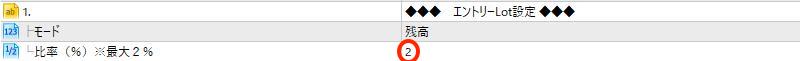 バックテスト上は2%でもそこまでリスクは高くないと思いますがさらにリスクを抑えたいと言うことでしたら「Lot割合」と「損切り設定の割合」をデフォルト設定から同じ割合で減らしてください。