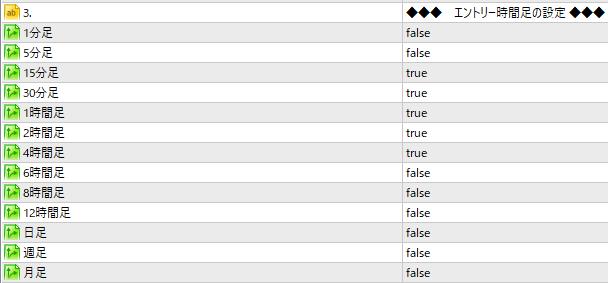 ※実際に開いている時間足とは関係なく、「true」になっている時間足のみで取引をおこないます。