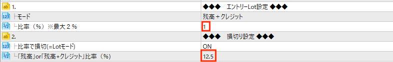 エントリー基準になった時間足が小さいほどエントリーLotが大きくなる傾向がありますので、不安な方は比率を下げてください。